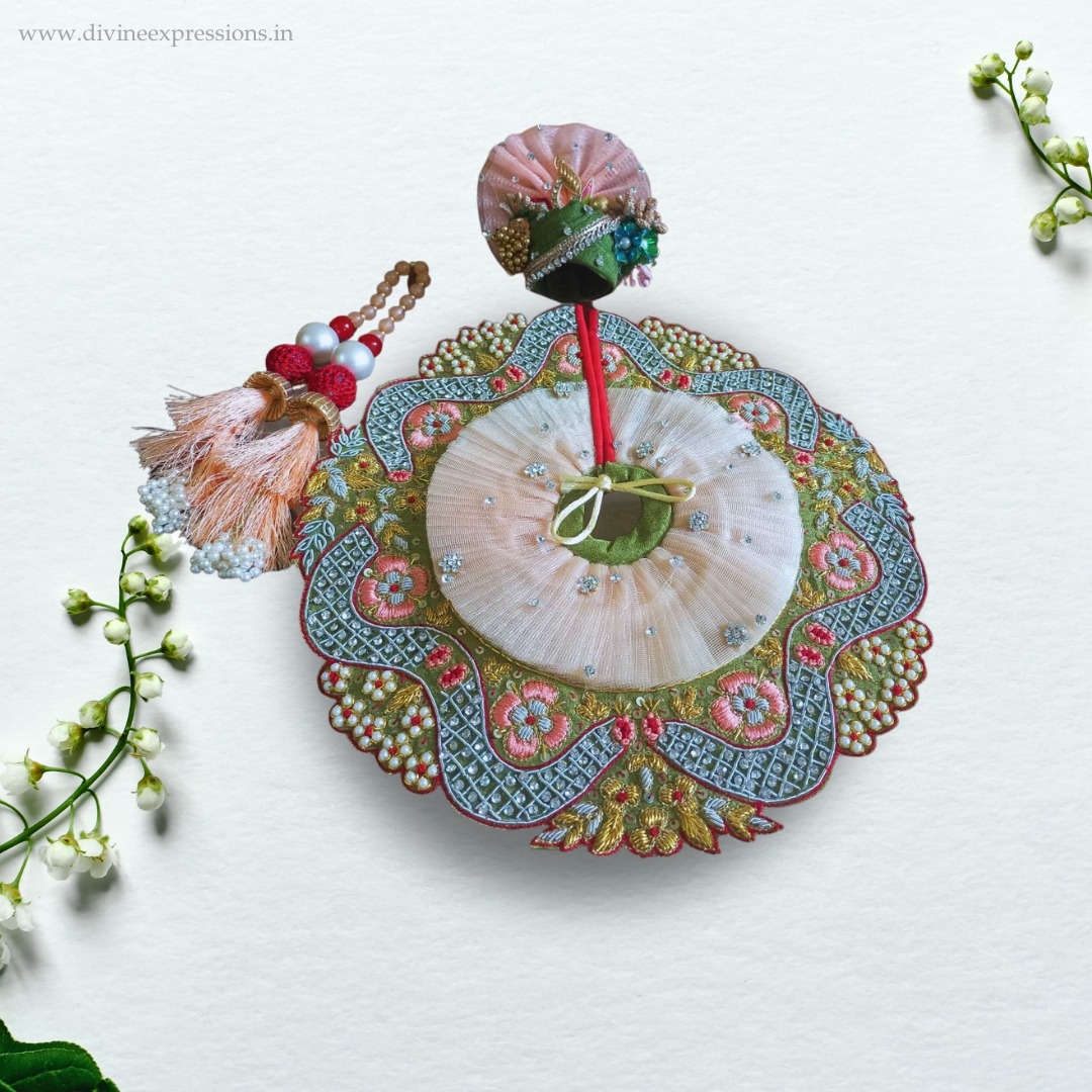 This intricately crafted garment showcases the finest craftsmanship and attention to detail. Every stitch and embellishment exudes a divine aura, elevating the presence of Laddoo Gopal. The dress features exquisite fabrics, delicate embroidery, and ornate designs, offering a perfect blend of elegance and devotion. The accompanying pagdi adds a touch of regal splendor, honoring the divine presence of Laddoo Gopal. Embrace the divine beauty of your deity with this designer dress and pagdi, an impeccable ensemble that reflects your love and reverence.