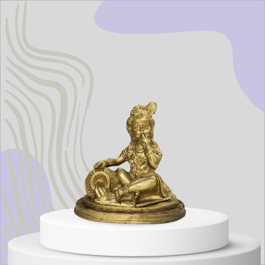 - Enchanting Kanha Ji eating Makkhan (butter) statue capturing a joyful moment.