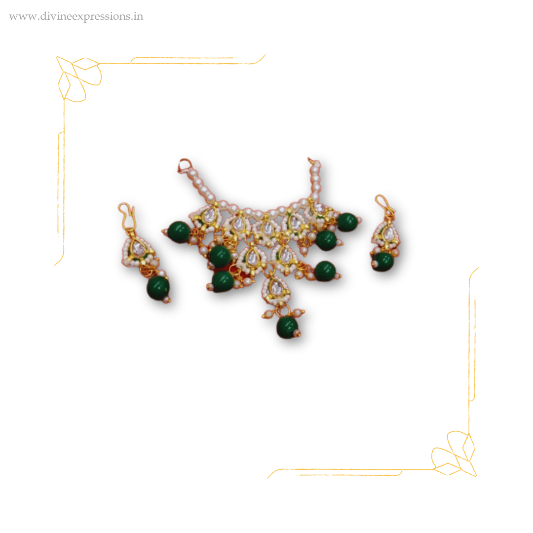 Introducing an enchanting Mala and Earring Set, meticulously crafted to add a touch of elegance and spirituality to your attire.