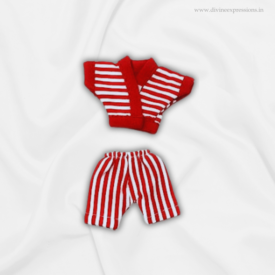 This graceful ensemble is crafted with soft and breathable fabric, ensuring a peaceful and comfortable night’s rest for the deity. The night dress features gentle colors and a relaxed fit, allowing Kanha Ji to unwind and relax in divine serenity. With its delicate design and attention to detail, this night dress embodies tranquility and elegance. Embrace the soothing presence of Kanha Ji as you dress the deity in this serene night dress, symbolizing peacefulness, serenity, and a deep connection with the divine during the nighttime hours. Witness the divine beauty of Kanha Ji as the night dress adds an aura of calmness and bliss to the beloved deity’s appearance, evoking a sense of tranquility and inner peace.