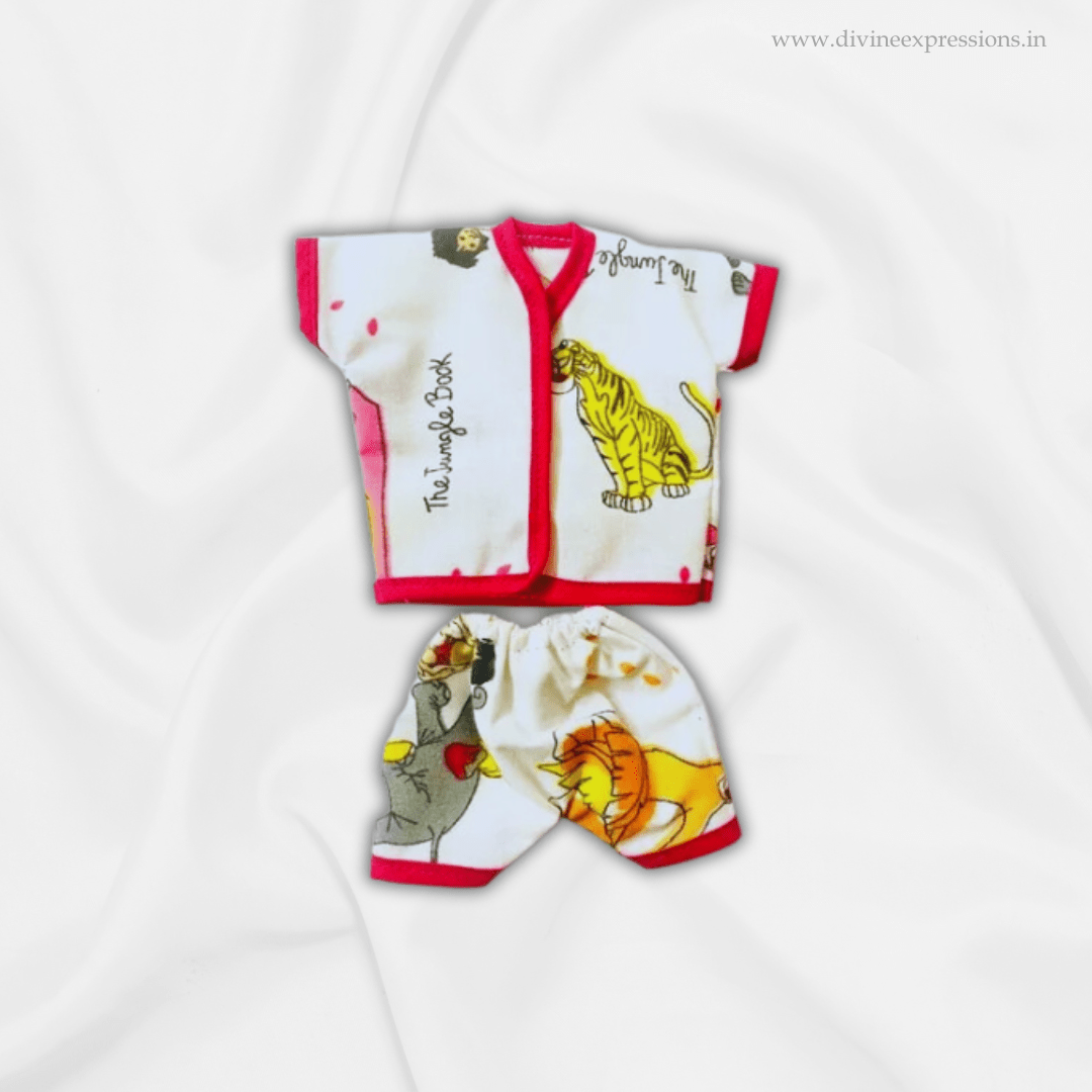 This graceful ensemble is crafted with soft and breathable fabric, ensuring a peaceful and comfortable night’s rest for the deity. The night dress features gentle colors and a relaxed fit, allowing Kanha Ji to unwind and relax in divine serenity. With its delicate design and attention to detail, this night dress embodies tranquility and elegance. Embrace the soothing presence of Kanha Ji as you dress the deity in this serene night dress, symbolizing peacefulness, serenity, and a deep connection with the divine during the nighttime hours. Witness the divine beauty of Kanha Ji as the night dress adds an aura of calmness and bliss to the beloved deity’s appearance, evoking a sense of tranquility and inner peace.